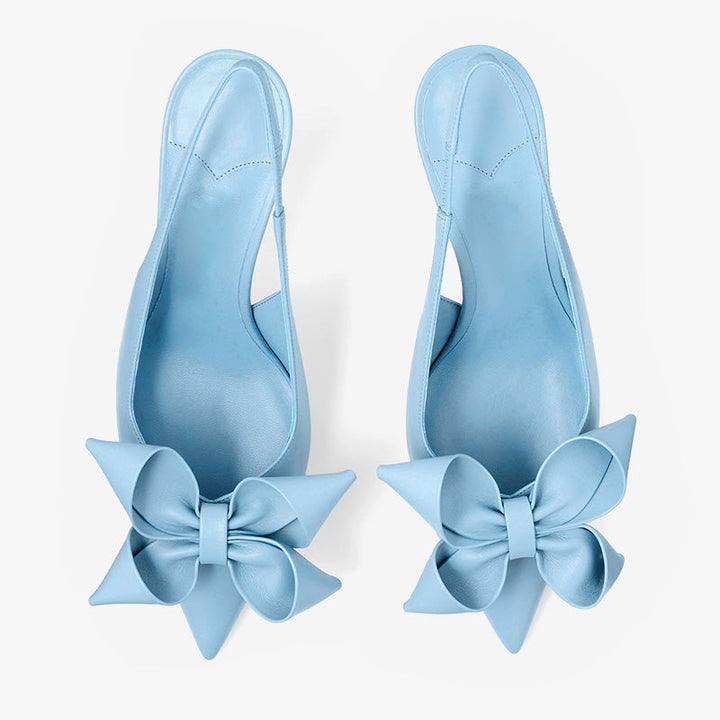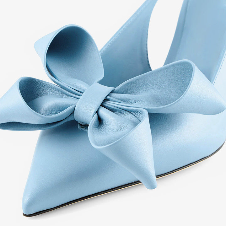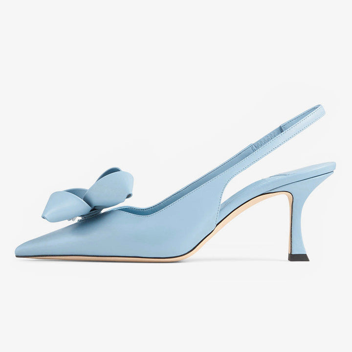 These elegant slingback pumps are crafted from leather in a soft blue hue. Featuring a pointed toe, delicate bow detail, and a curved 70mm heel, they’re finished with an elasticated strap and a leather-rubber sole for comfort and style.Color: Blue