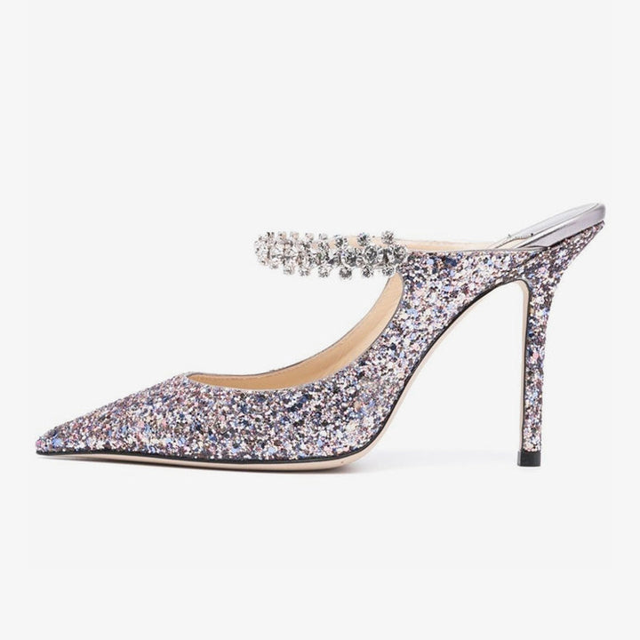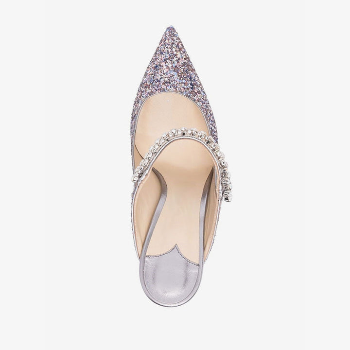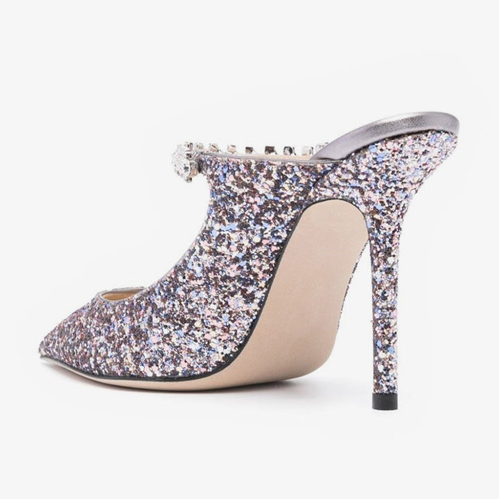 Multicolor Silver Glitter Crystal Mules 100mm