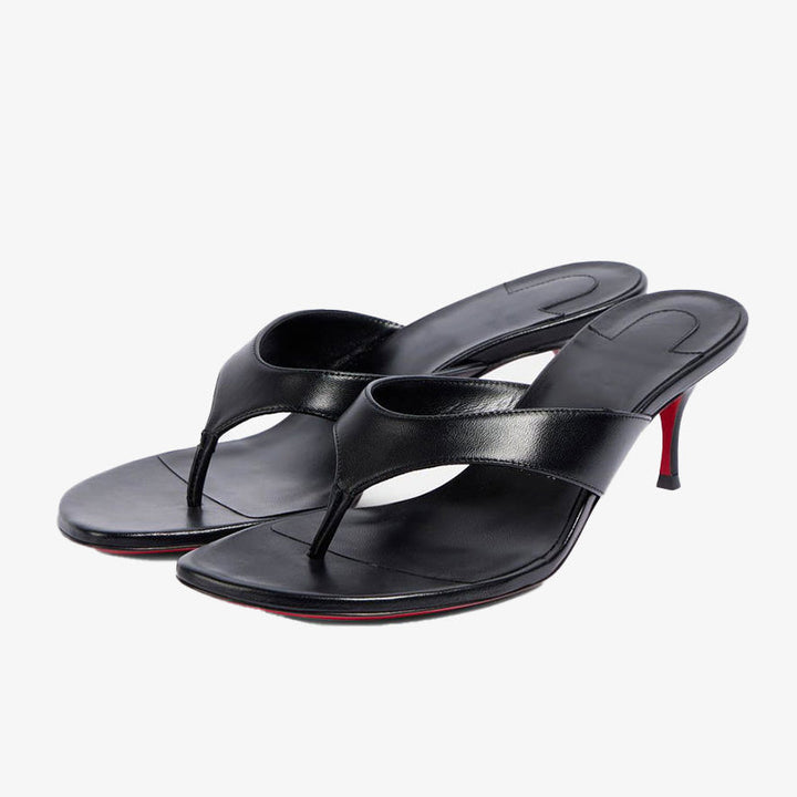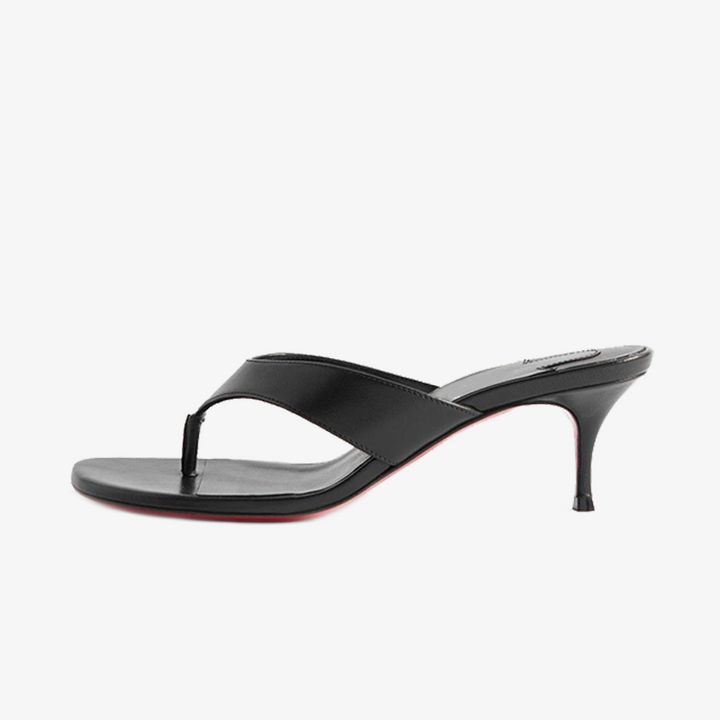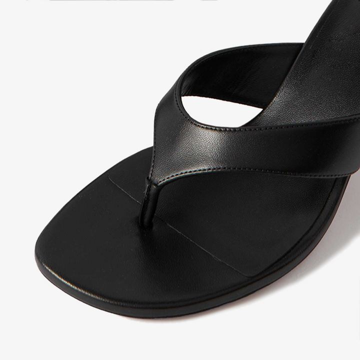 These sandals are made from black calf leather in a simple flip-flop inspired silhouette with classic straps and toe posts. Set on comfortable 60mm heels for a little elevation, they offer a timeless design perfect for easy, everyday wear.