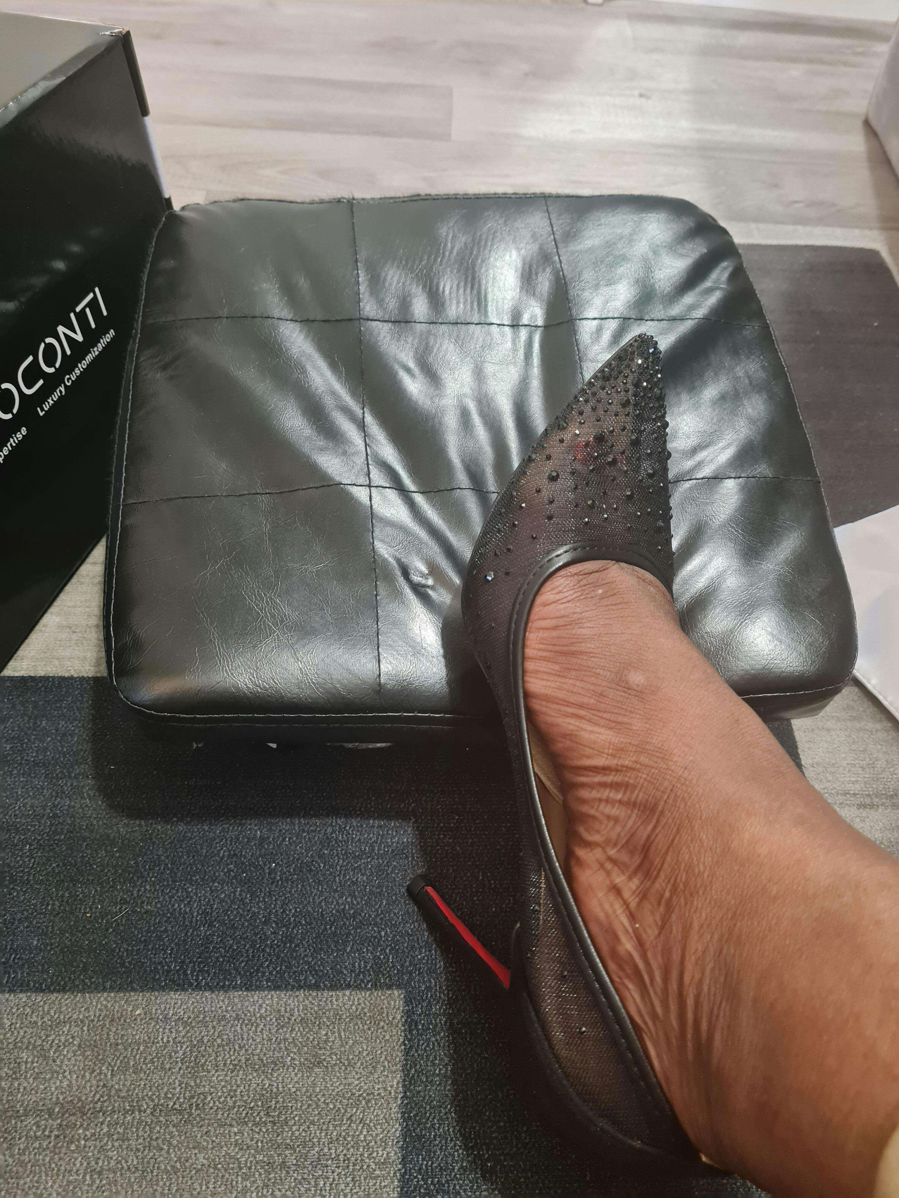 A stiletto with a graceful 100 mm heel, this iconic pump is adorned with hand-placed shimmering strass from toe to tip. For an ultra-luxurious finish, the heel is wrapped in soft black velvet , adding depth and refinement to the overall silhouette.
