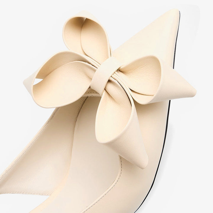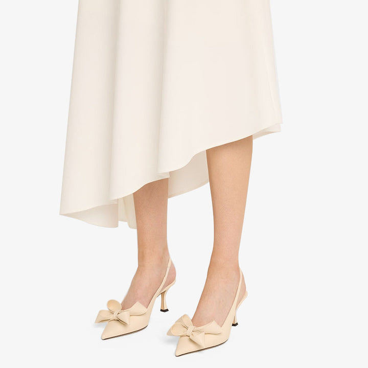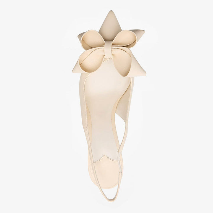 Crafted from smooth leather, these pumps feature a pointed toe, structured bow accent, and a 70mm stiletto heel. Finished with a stretch slingback strap and sleek sole for a refined, comfortable fit.
