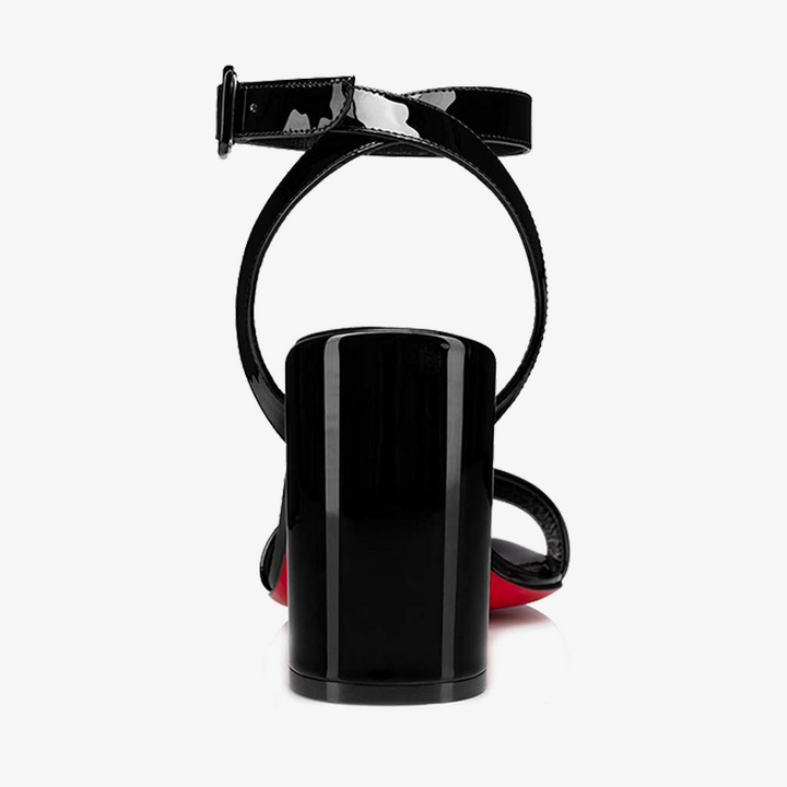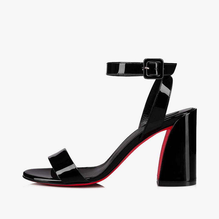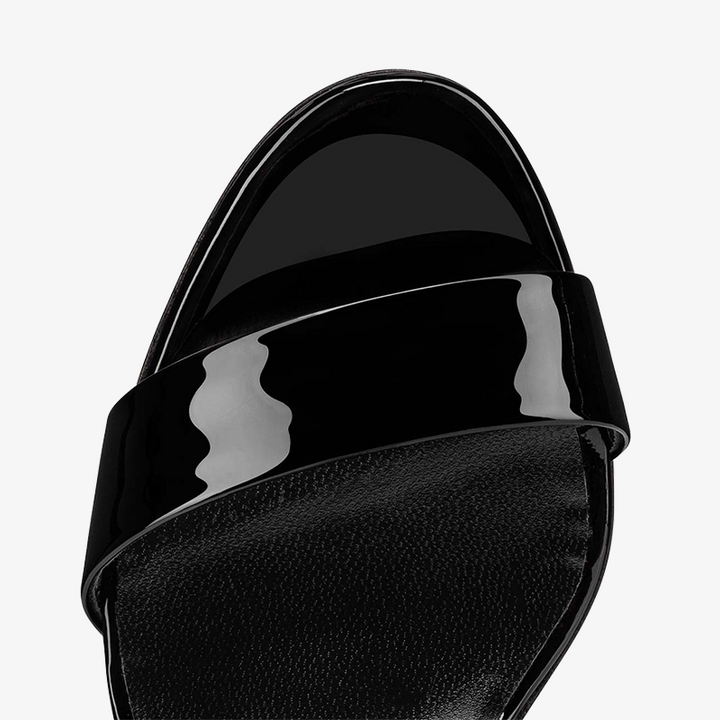 Black Patent Leather Sandal with Square Clasps
