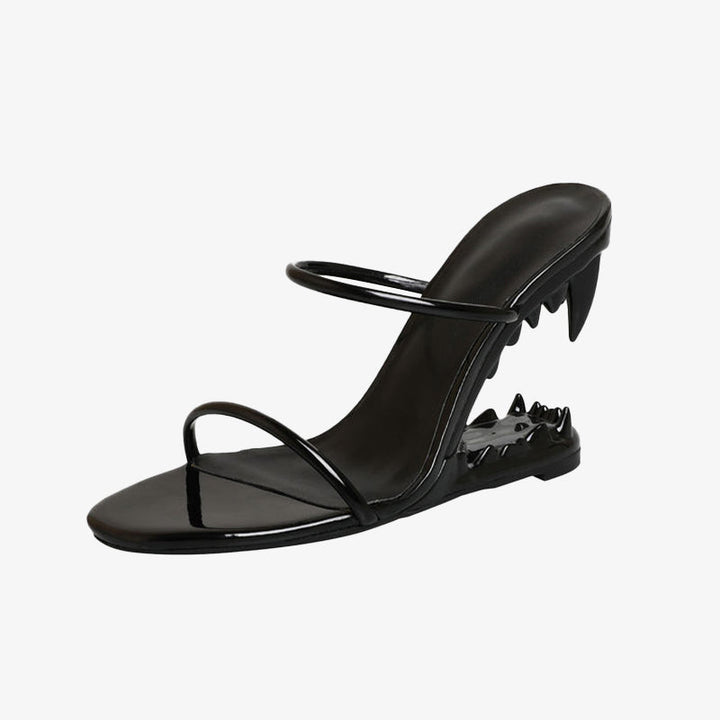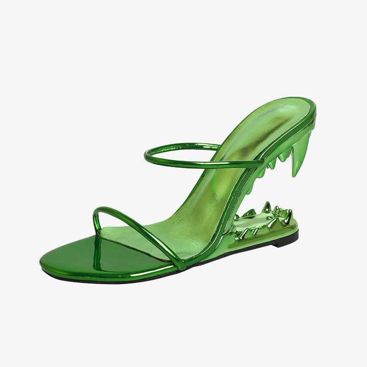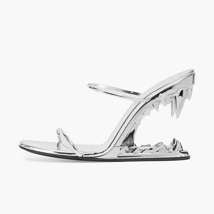 Futuristic and refined, these silver sandals showcase a sculpted mirror-finish heel and dual metallic straps. Designed with a rounded toe and smooth leather footbed for a bold, modern finish.Upper: 100% calf leather