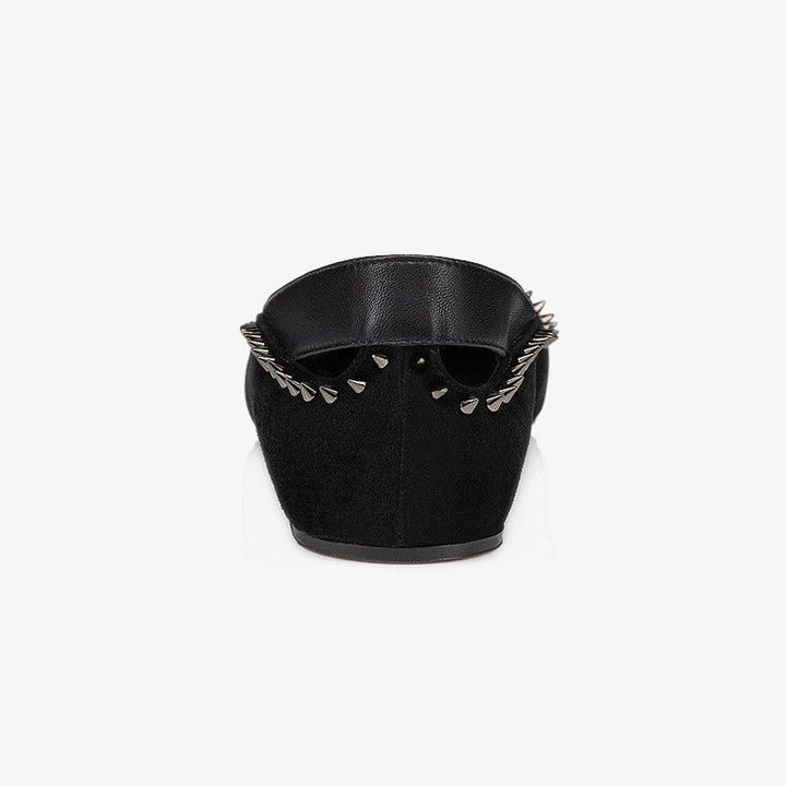 The stiletto is a powerful sandal that commands attention with its bold design. Crafted in Black calf leather, it features signature tonal spikes on both the toe and heel straps. The tonal lining and sleek finish create a captivating all-white silhouette—ideal for turning heads at any upscale event or evening occasion.
